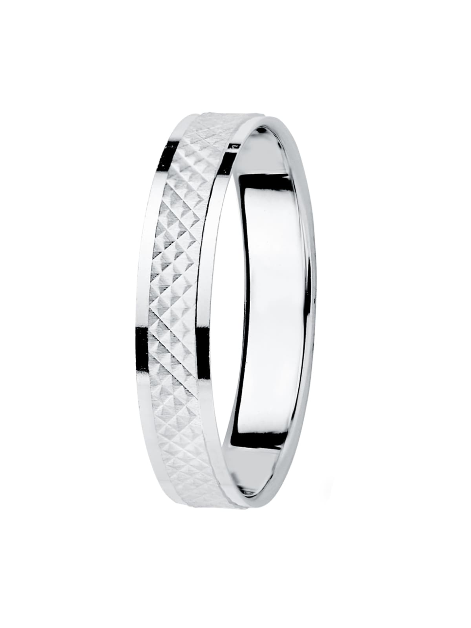 18K ALIANZA ORO BLANCO BORDES BRILLO Y CENTRO TALLADO, ANCHO: 3,5 MM